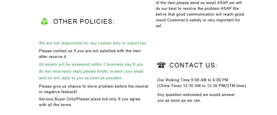 4. The color of the actual items may slightly different from the listing images due to different computer screen, thanks for your understanding.
