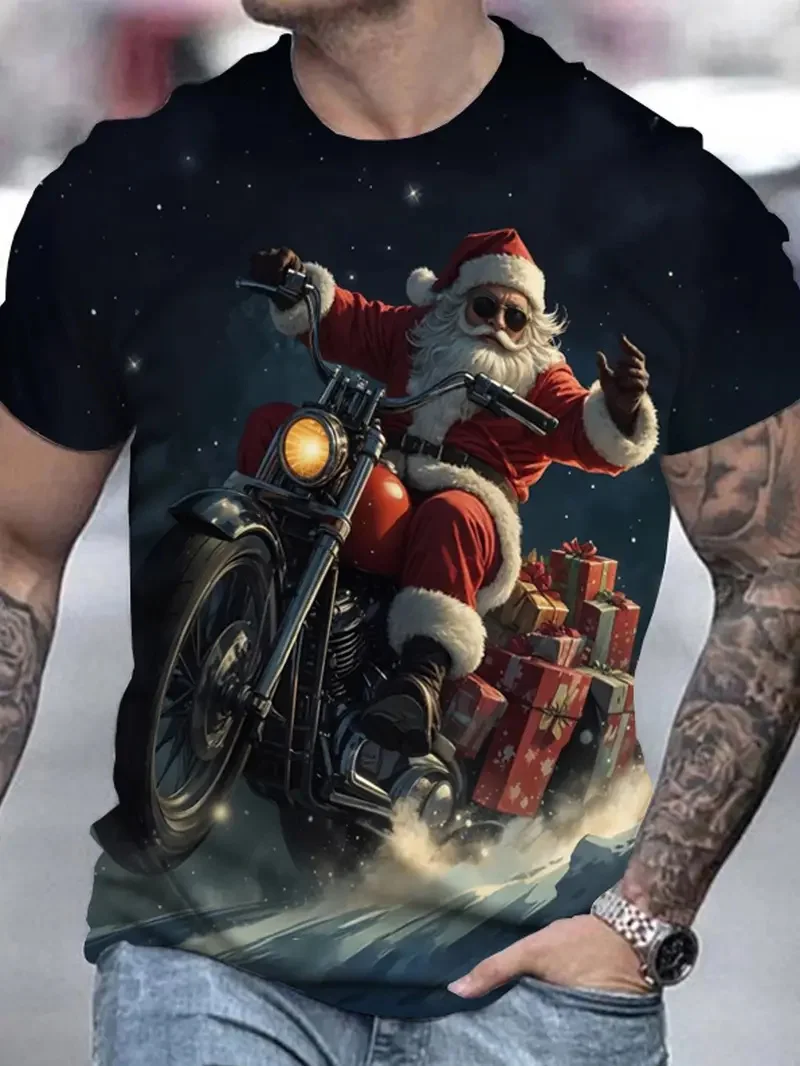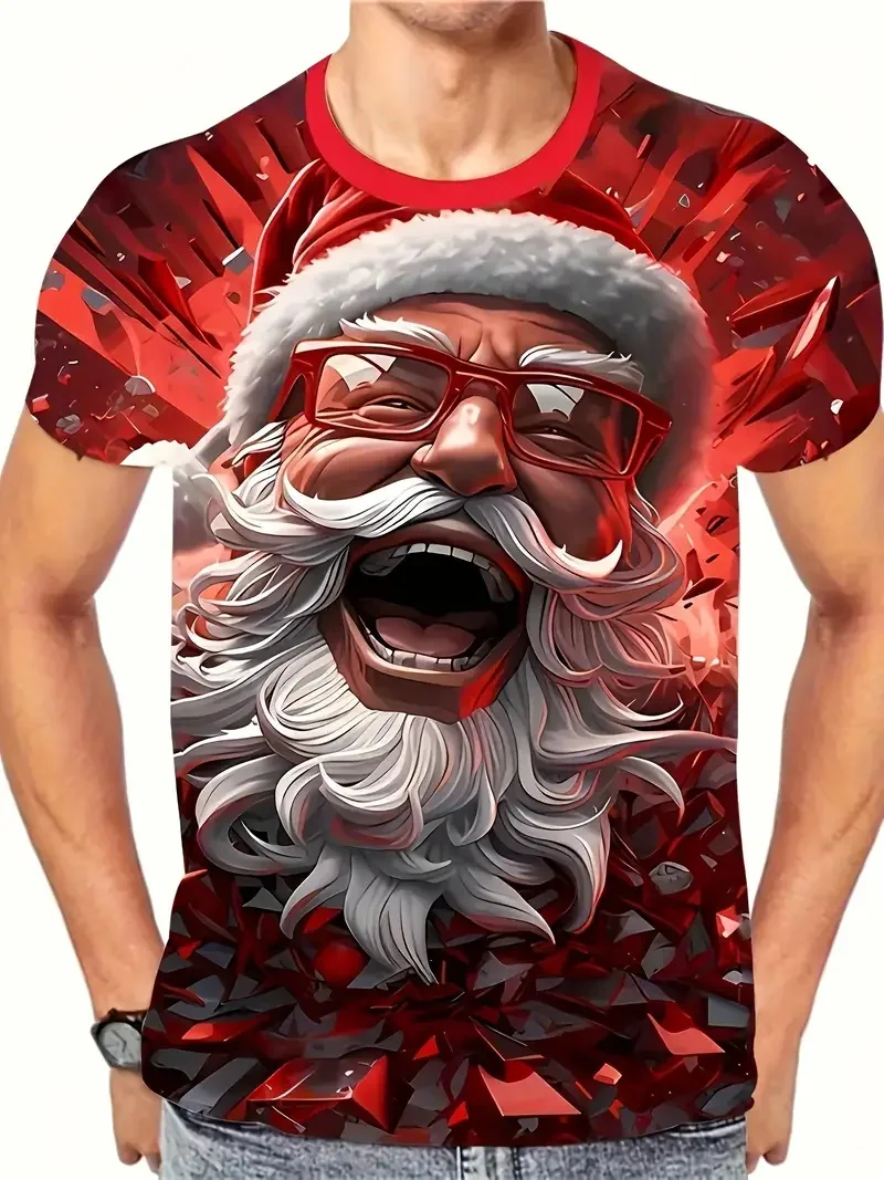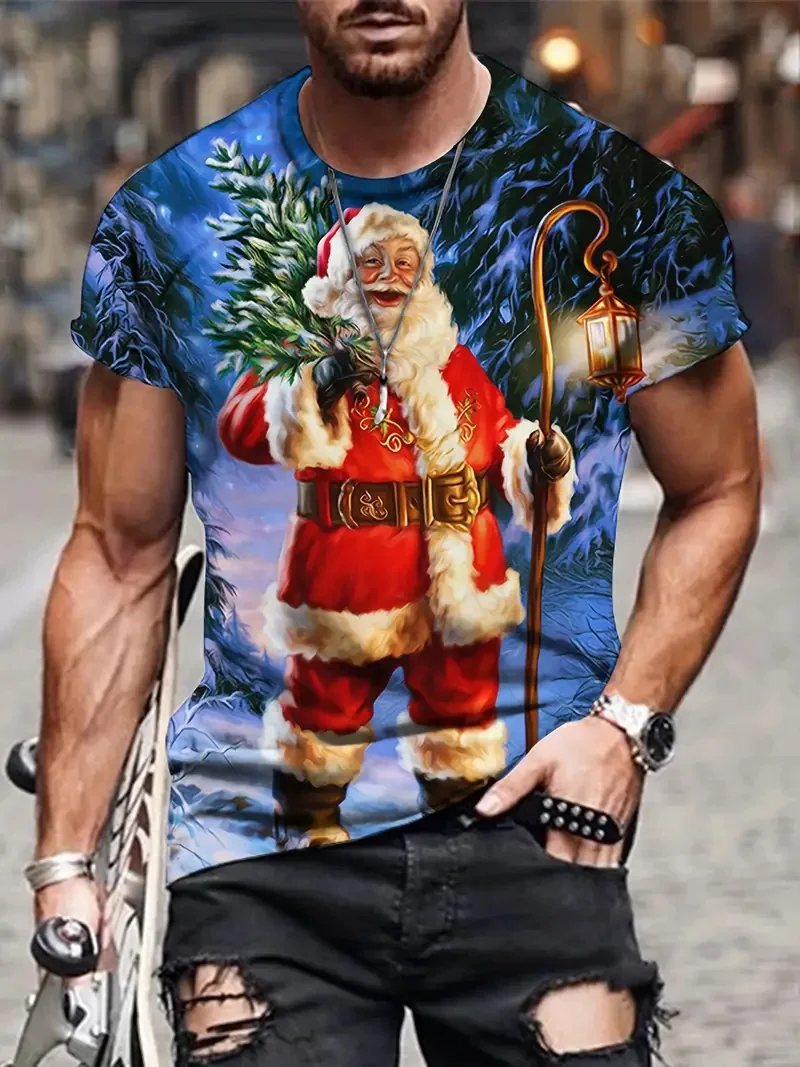 Christmas Mens T-Shirt Summer Funny Santa Claus Print Men's Clothes O-Neck Men's Short Sleeve T-Shirts Loose Vintage Y2k Clothes